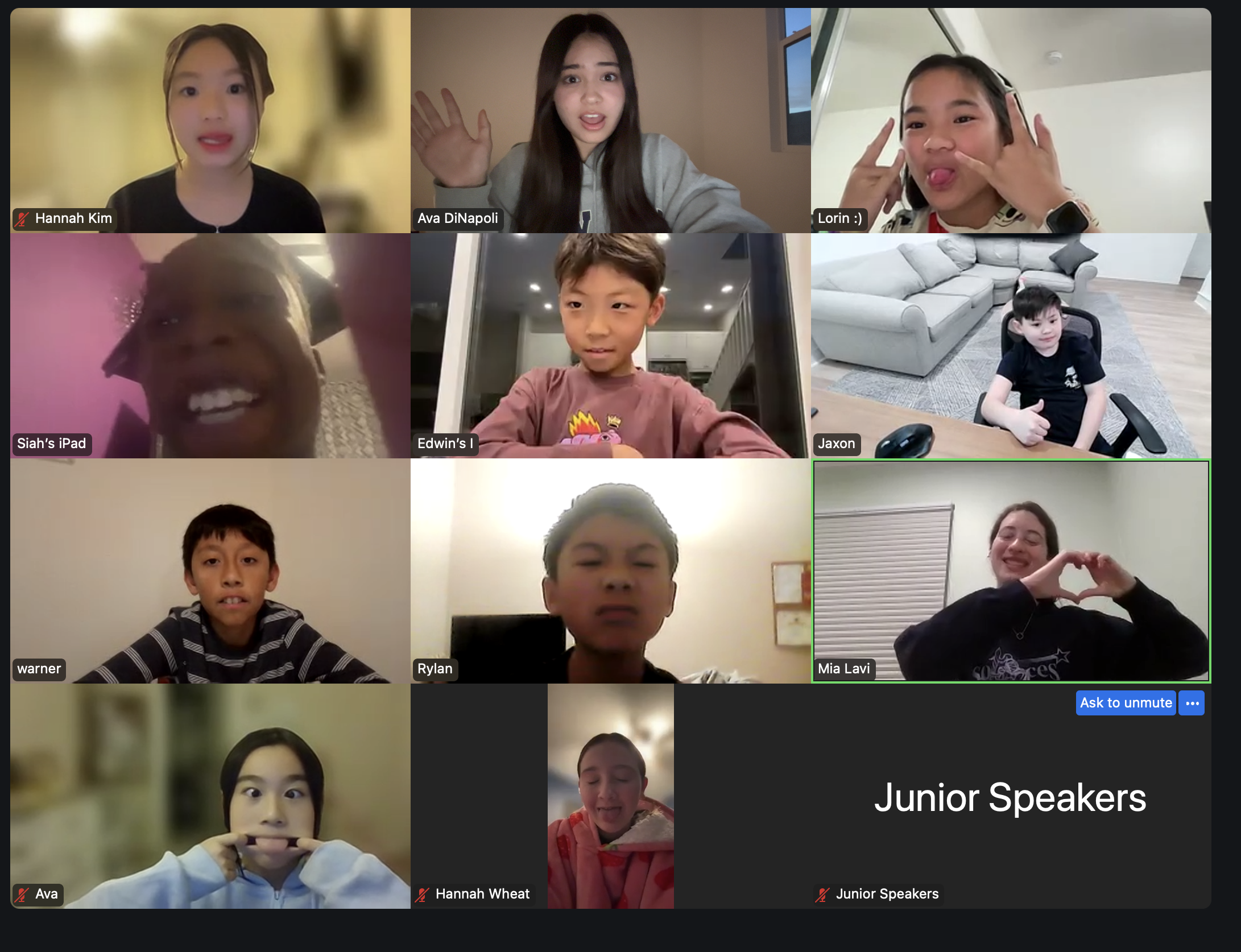 Our Junior Speakers program empowers young voices through public speaking and speech writing. We’ve had the privilege of working with 250+ families located internationally and will continue to grow out Junior Speakers community. We currently offer sessions for students and Girl Scout troops, equipping them with the skills and confidence to communicate effectively. Our mission is to inspire the next generation of speakers and give them a platform to share their voice.